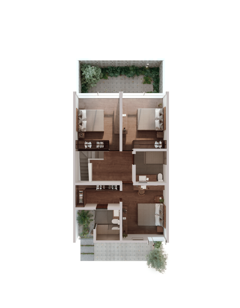 Los pisos en Encuentro Morelos son una combinación de colores entre planta baja y alta, en planta baja piso formato 60*60 de la marca Castel en color gris, mientras que en planta alta el piso en formato 20*100 tipo duela color café.